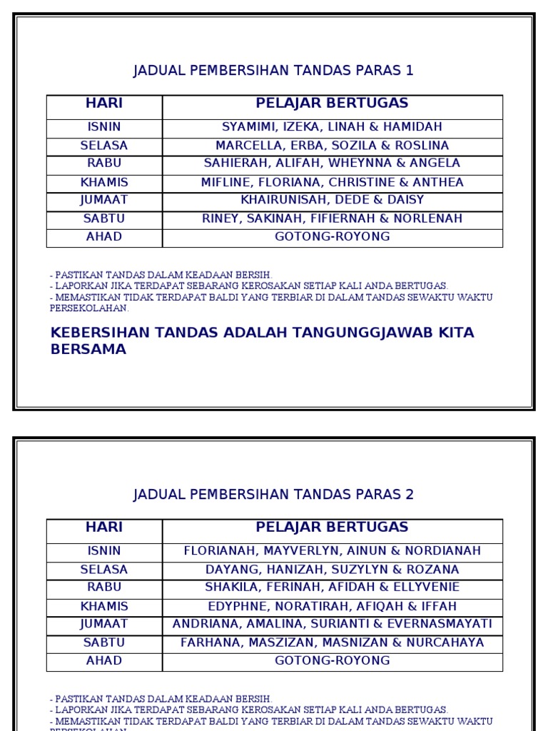 Selamat Datang Ke Bilik Akses Pusat Sumber Pra U Smkdpb Jadual Bertugas Rakan Akademik Junior. 12 12 found this document not useful Mark this document as not useful. Sebenarnya isu kebersihan tandas merupakan sesuatu yang serius yang perlu kita semua ambil.