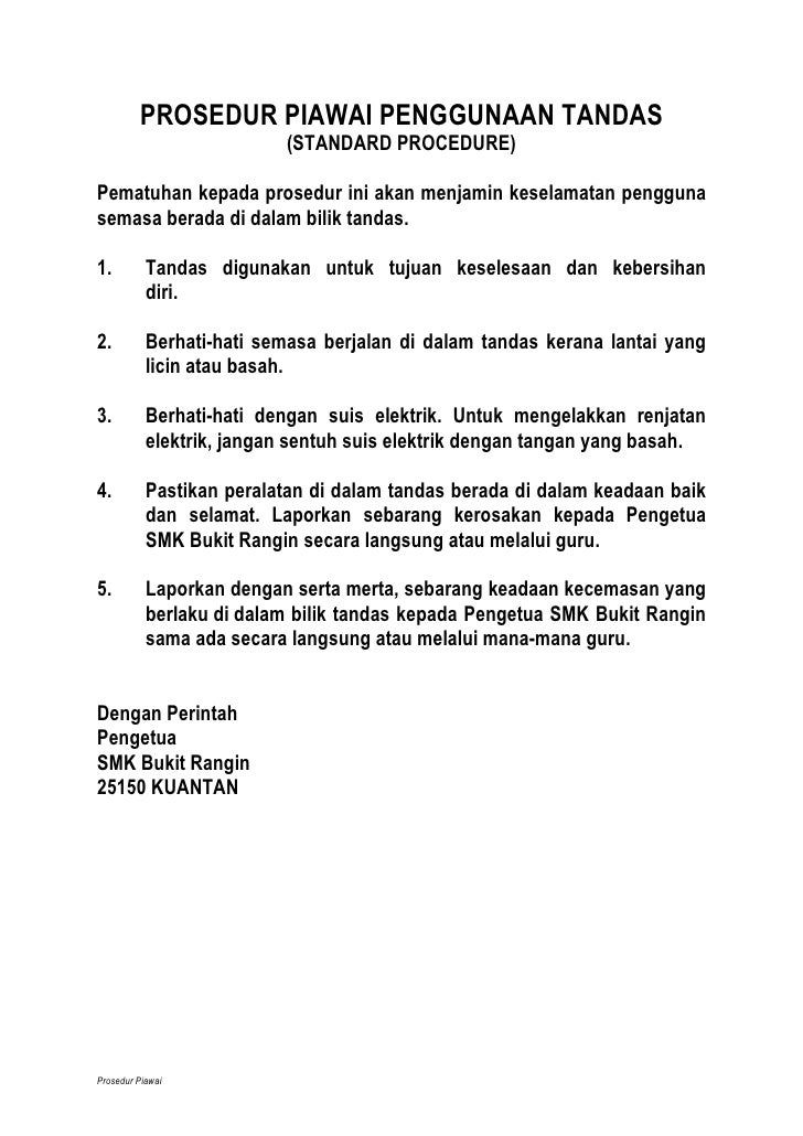Sebelum tu dia perlu baca dulu tatacara penggunaan tandas dia tekan lampu lampu akan naik kepada lampu merah. PROSEDUR PIAWAI PENGGUNAAN TANDAS STANDARD PROCEDURE Pematuhan kepada prosedur ini akan menjamin keselamatan pengguna semasa berada di dalam bilik tandas. Tambahnya setakat lima hari pelaksanaan kesemua peraturan atau syarat yang ditetapkan melalui sistem lampu isyarat terbabit dipatuhi kesemua.